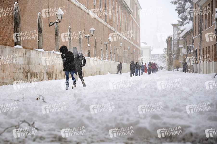 Das Sturmtief Filomena sorgt in der Region Madrid und anderen Teilen Spaniens mit starken Schneefällen für Chaos. Die Hauptstadt Madrid wurde durch historisch heftigen Schneefall lahmgelegt. Seit 50 Jahren hat es nicht so geschneit. Der Verkehr ist in weiten Teilen des Landes zusammengebrochen. Alcalá de Henares, 09.01.2021