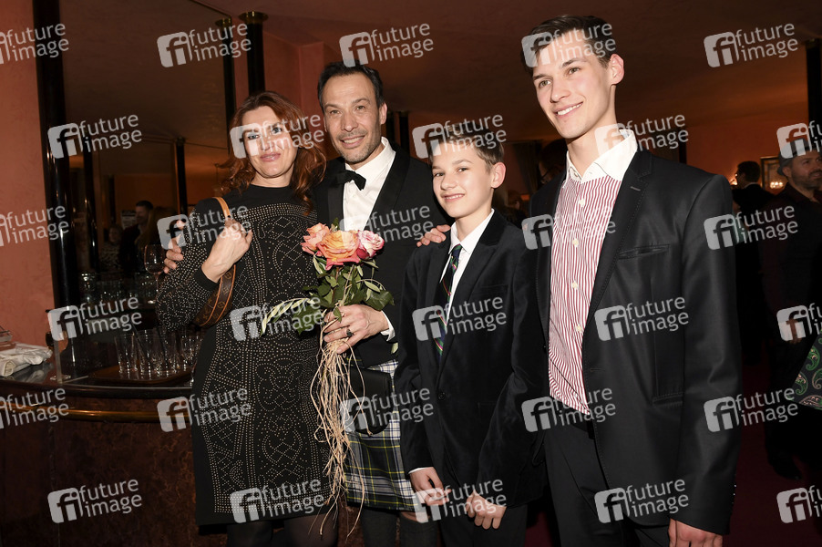 Manfred Stecher mit Ehefrau Rosita und Söhnen Maximillian und Lorenz bei der Premiere des Theaterstücks 'Wechselspiel der Liebe' in der Komödie im Bayerischen Hof. München, 26.02.2020
