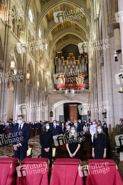 Königliche spanische Familie, Royals, Adel, Santa María la Real de La Almudena, Messe, Gottesdienst, Gedenken, Corona, Sars-CoV-2, Covid-19, Coronavirus, Coronaviren, Corona-Virus, Coronakrise, Corona-Krise, Corona-Pandemie, Coronamaßnahmen, Corona-Schutzmaßnahmen, Atemschutz, Atemschutzmaske, Virenschutz, Schutzmaske, Mundschutzpflicht, Maskenpflicht, Mundschutz-Pflicht, Mund-Nase-Schutz, Mund-Nasen-Schutz, MNS