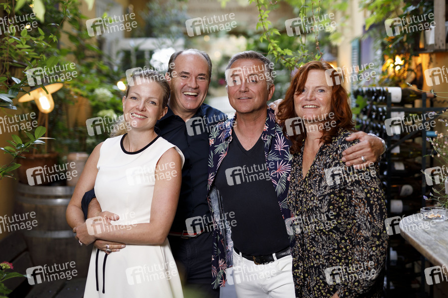 Wolfram Kons mit Ehefrau Alexa Apermann, Jörg Knör und Pe Werner bei der Geburtstagsfeier zum 60. Geburtstag von Jörg Knör im Restaurant Belgischer Hof auf der Brüsseler Straße. Köln, 17.07.2019