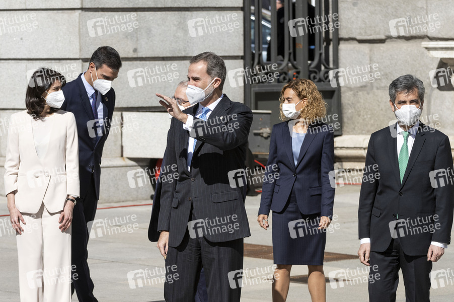 Pilar Llop, Pedro Sanchez, Jose Gonzalez Rivas, König Felipe von Spanien, Meritxel Batetund Carlos Lesmes bei der Feier zum 40. Jahrestag vom 23-F, dem vereitelten Putsch vom 23. Februar 1981, im Congreso de los Diputados. Madrid, 23.02.2021
