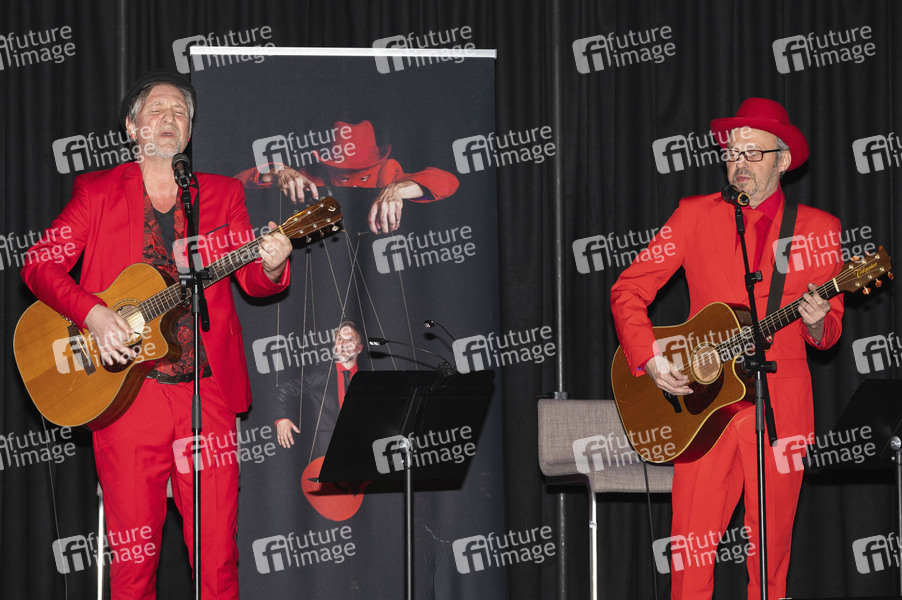 Dirk Zöllner und Andre Drechsler bei der musikalischen Lesung 'Dirk Zöllner - Herzkasper' im Steinhaus. Bautzen, 26.02.2022