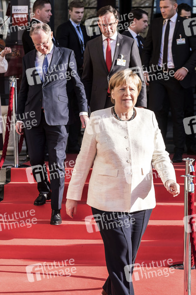 Stephan Weil, Angela Merkel und Jochen Köckler bei der Eröffnung der Hannover Messe 2019 im HCC. Hannover, 31.03.2019