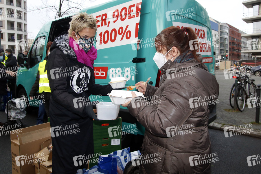Inka Bause verteilt Essen und Geschenke aus dem Food Truck an Obdachlose und Bedürftige. Berlin, 16.12.2020