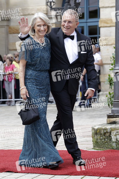 Henry Schramm mit Ehefrau Andrea Schramm bei der Eröffnung der 113. Richard-Wagner-Festspiele 2025 mit der Neuinszenierung von 'Die Meistersinger von Nürnberg' im Bayreuther Festspielhaus. Bayreuth, 25.07.2025