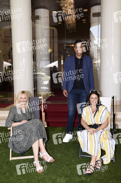 Simone von Anhalt, Giovane Elber und Cintia Elber beim Fototermin zur Vier Jahreszeiten Kempinski Charity Kunst Auktion im Hotel Vier Jahreszeiten Kempinski. München, 11.06.2021