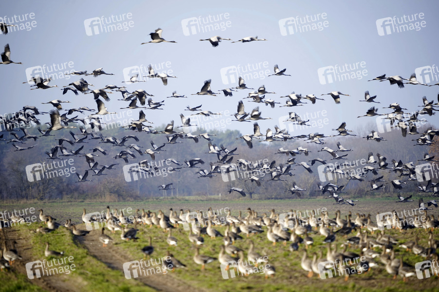 Kraniche und Wildgänse