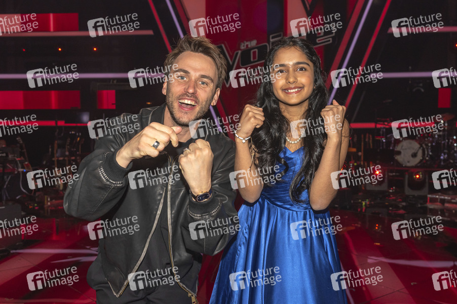 Clueso und Sohum beim Photocall mit den Finalisten und Coaches der 13. Staffel der TV-Show 'The Voice Kids' im Studio H Berlin-Adlershof. Berlin, 18.04.2025