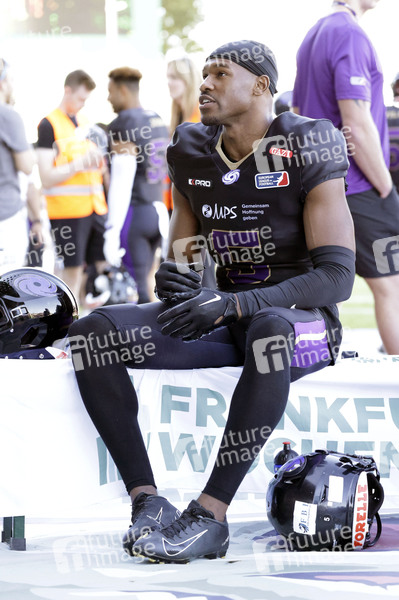 Jamalcolm Liggins (5) beim American Football-Spiel Frankfurt Galaxy gegen Madrid Bravos in der PSD Bank Arena Frankfurt. Frankfurt am Main, 10.08.2024