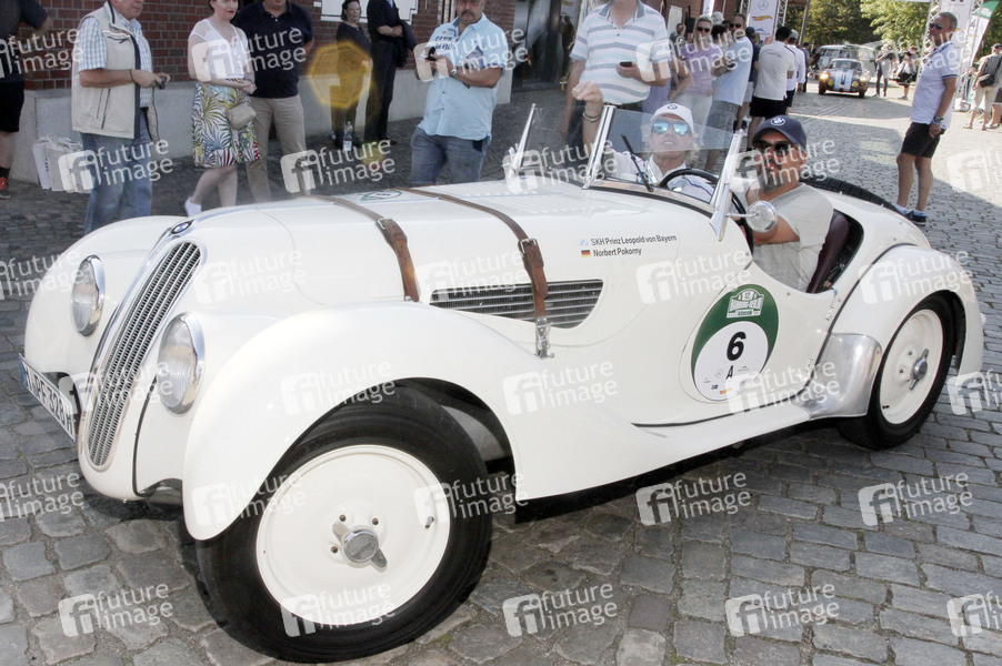 Leopold Prinz von Bayern in einem BMW 328 bei der Zielankunft der 12. Auto Bild Klassik Rallye in Ballinstadt. Hamburg, 31.08.2019