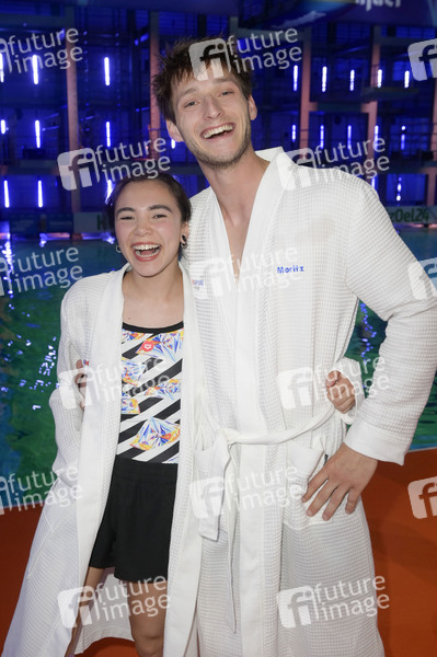Moritz Hans mit Begleitung in der Fernsehshow 'RTL Turmspringen' aus der Schwimm- und Sprunghalle im Europasportpark Berlin. Berlin, 03.06.2022