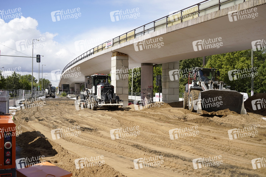 Beginn vom Abriss der maroden Brücke an der Wuhlheide (Oberschöneweide). Die kaputte Brücke soll schnellstmöglich entfernt werden mit dem Ziel, die Freigabe der blockieren Straßenbahntrasse und Wiederherstellung des Fuß- und Radverkehrs zwischen Treskowallee und Edisonstraße möglichst bis zum 30. Mai. Berlin, 23.05.2025
