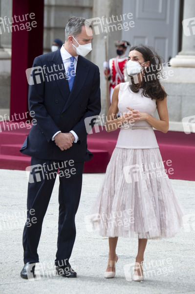 König Felipe VI. von Spanien und Königin Letizia von Spanien beim Empfang des südkoreanischen Präsidenten mit militärischen Ehren im Palacio Real. Madrid, 15.06.2021