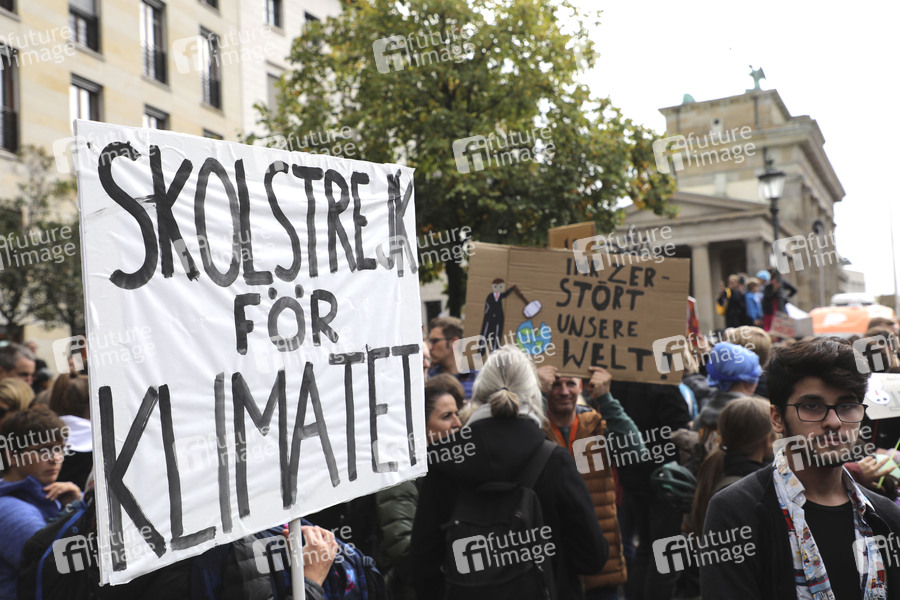 Demonstranten bei der 'Fridays for Future' Demonstration im Rahmen des weltweiten Klimastreiks am Brandenburger Tor. Berlin, 20.09.2019
