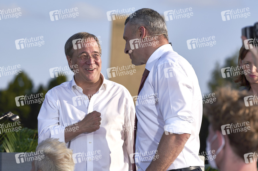 Armin Laschet und Vitali Klitschko in der Wahlkampfarena der Jungen Union zur Bundestagswahl im Expowal. Hannover, 04.09.2021
