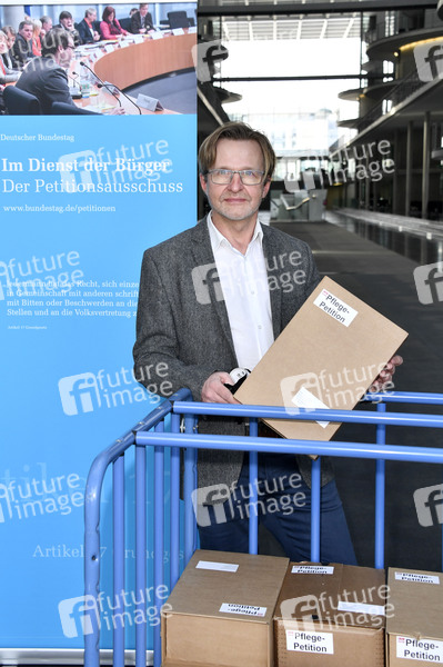 Dr. Bernhard Albrecht bei der Übergabe der Unterschriftenlisten zur Pflege-Petition 'Gesundheitsreform für eine bessere Pflege' an den Petitionsausschuss des Deutschen Bundestags im Paul-Löbe-Haus. Berlin, 11.02.2021