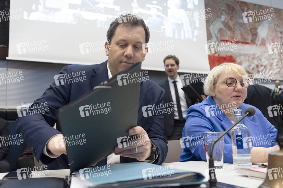 Lars Klingbeil und Katja Mast bei der Fraktionssitzung der SPD-Bundestagsfraktion im Reichstagsgebäude. Berlin, 17.03.2025