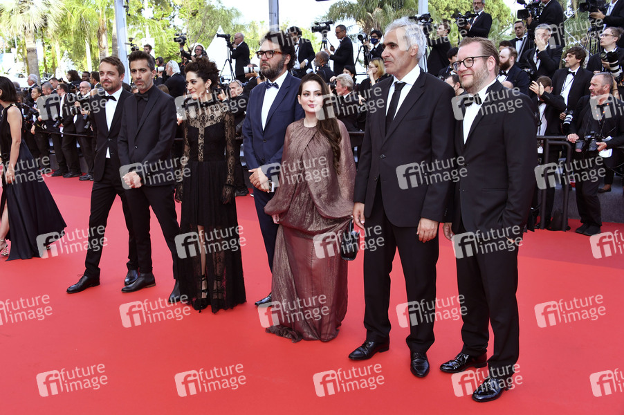 Jacob Jarek, Gast, Zar Amir Ebrahimi, Arash Ashtiani, Farouzan Jamshidneajad, Mehdi Bajestani und Sol Bondy bei der Closing Ceremony des Festival de Cannes 2022 / 75. Internationale Filmfestspiele von Cannes im Palais des Festivals. Cannes, 28.05.2022