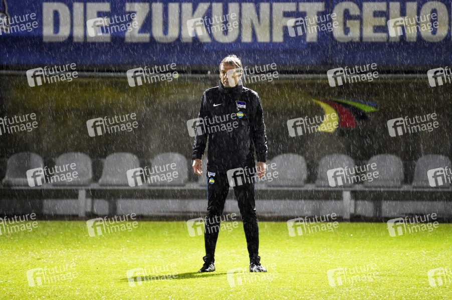 Trainer, Cheftrainer, Fußballtrainer, Training, Fussball Bundesliga, Saison 2019 2020, Mannschaft, Fußballspieler, Fussballspieler, Sportler, Sport, Match, Spiel, Fußball, Teamsport, Mannschaftssport, Fußballmannschaft, Fußballverein, Stadion auf dem Wurfplatz, Regen