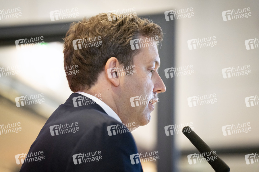 Lars Klingbeil beim Pressestatement nach der Fraktionssitzung der SPD-Bundestagsfraktion im Reichstagsgebäude. Berlin, 26.02.2025