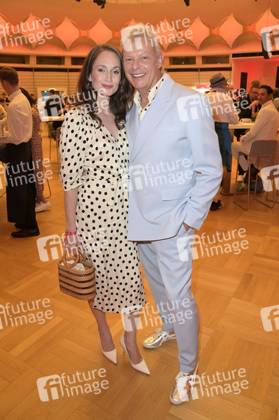 Uwe Fahrenkrog-Petersen mit Partnerin Christin Dechant bei der Verleihung des Fred Jay Preises 2024 im bcc Berlin Congress Center. Berlin, 14.05.2024
