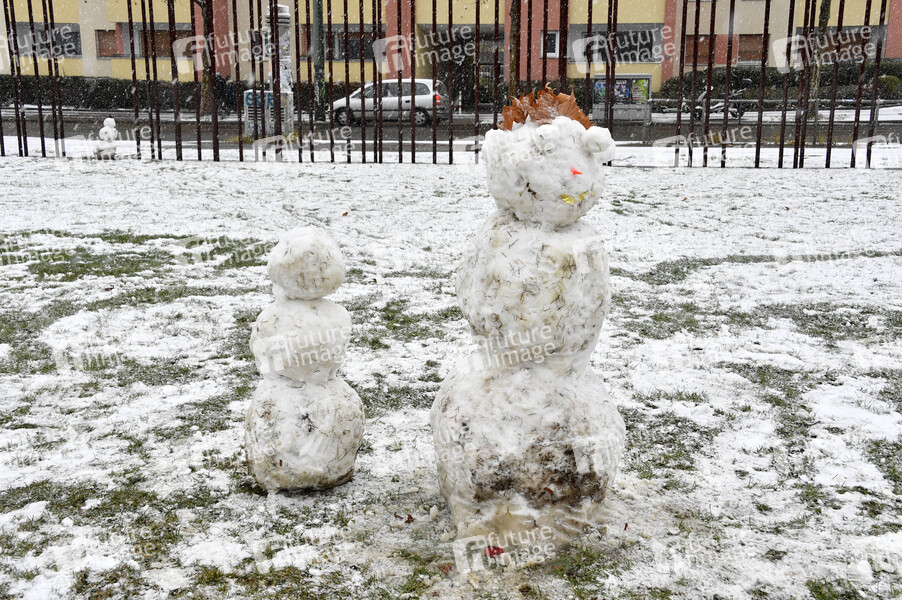 Erster Schnee und erste Schneemänner 2021 an der Bernauer Straße. Berlin, 03.01.2021