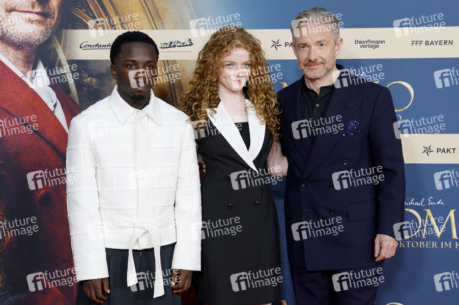 Araloyin Oshunremi, Alexa Goodall und Martin Freeman bei der Premiere des Kinofilms 'Momo' im Mathäser Filmpalast. München, 28.09.2025
