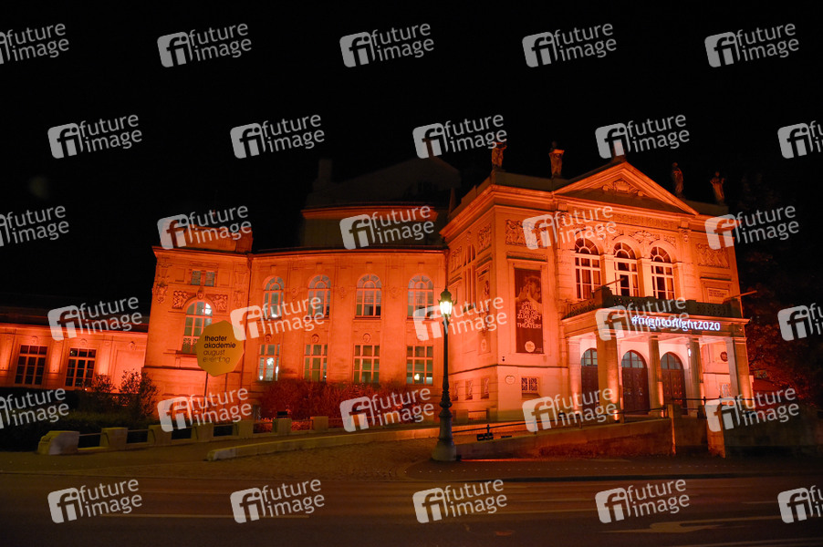 Beleuchtetes Prinzregententheater - Mit der bundesweiten Aktion 'Night of Light' macht die Veranstaltungsbranche auf ihre finanzielle Notlage durch die Corona-Krise aufmerksam. München, 22.06.2020