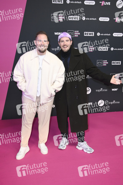 Dennis Wolter und Benni Wolter bei der 26. Verleihung der 1Live Krone 2025 im Lokschuppen. Bielefeld, 04.12.2025