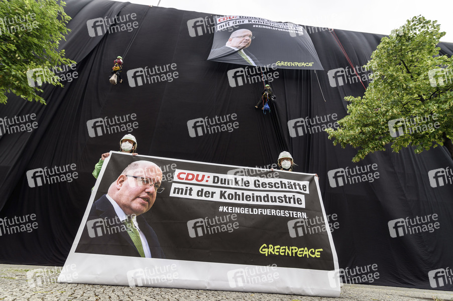 Dunkle Geschäfte mit der Kohleindustrie - Umweltaktivisten von Greenpeace verhüllen die CDU-Parteizentrale um gegen das Kohleausstiegsgesetz zu protestieren. Berlin, 01.07.2020