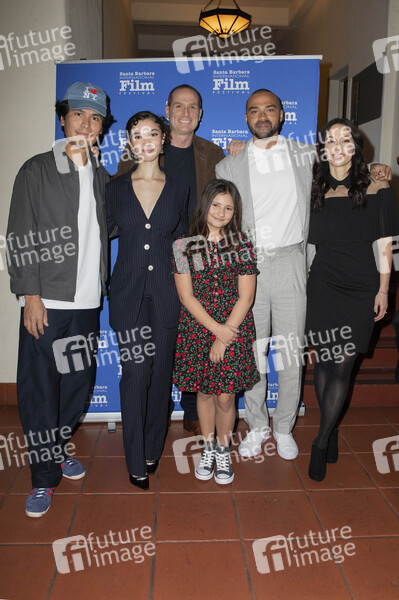 Forrest Goodluck, Malia Baker, Dan Kay, Jojo Regina, Jesse Williams und Fernanda Andrade beim Podiumsgespräch zum Kinofilm 'Spider & Jessie' auf dem 40th Santa Barbara International Film Festival 2025 im Riviera Theatre. Santa Barbara, 08.02.2025