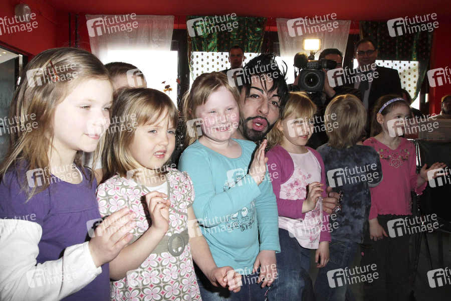 Scheckübergabe von Harald Glööckler an das Deutsche Kinderhilfswerk und den Babel e.V. in Hellersdorf, Berlin