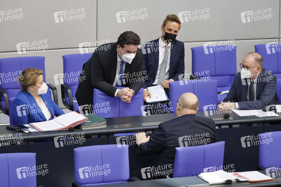 Franziska Giffey, Hubertus Heil und Peter Altmaier in der 218. Sitzung des Deutschen Bundestages im Reichstagsgebäude. Berlin, 25.03.2021