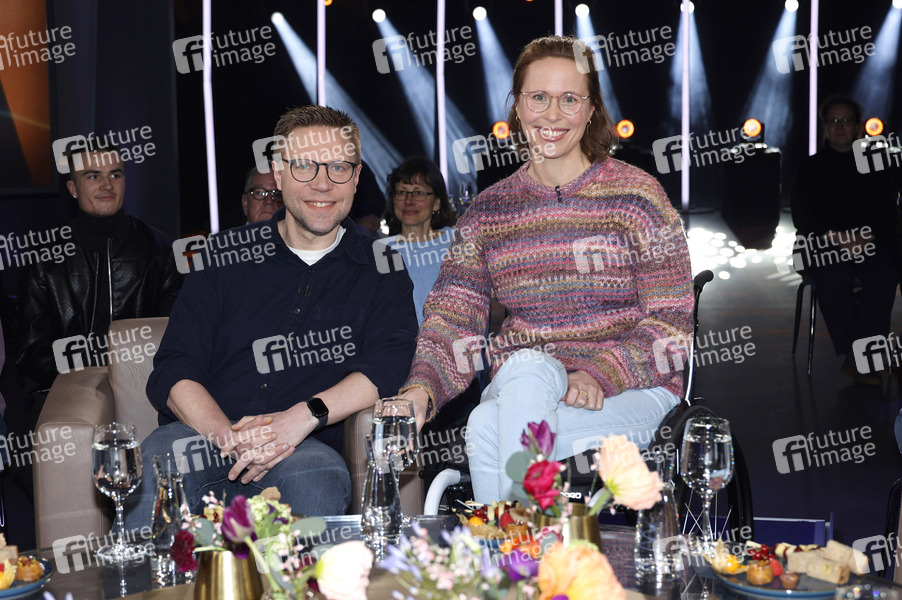 Tanja Scholz mit Ehemann Björn Scholz bei der Aufzeichnung der 'NDR Talk Show' im NDR Fernsehstudio Lokstedt. Hamburg, 13.02.2026
