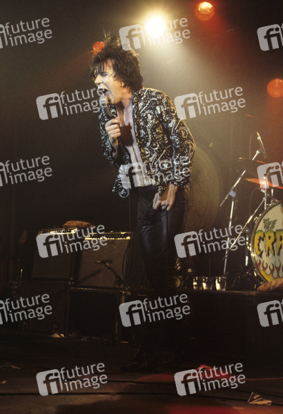 Lux Interior von The Cramps live in der Brixton Academy. London, 10.04.1984