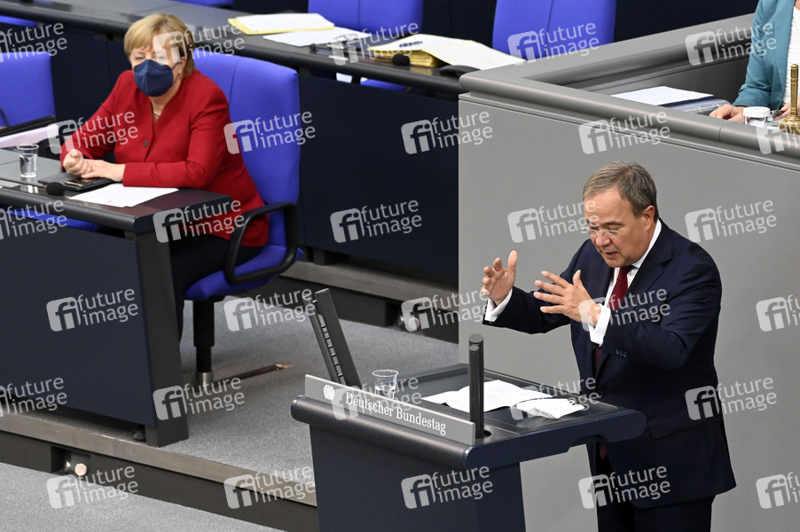 Angela Merkel und Armin Laschet in der 238. Sitzung des Deutschen Bundestages im Reichstagsgebäude. Berlin, 25.08.2021