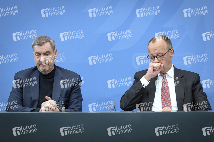 Markus Söder und Friedrich Merz bei einer Pressekonferenz nach der Sitzung des Koalitionsausschusses von Union und SPD im Kanzleramt. Berlin, 28.01.2026