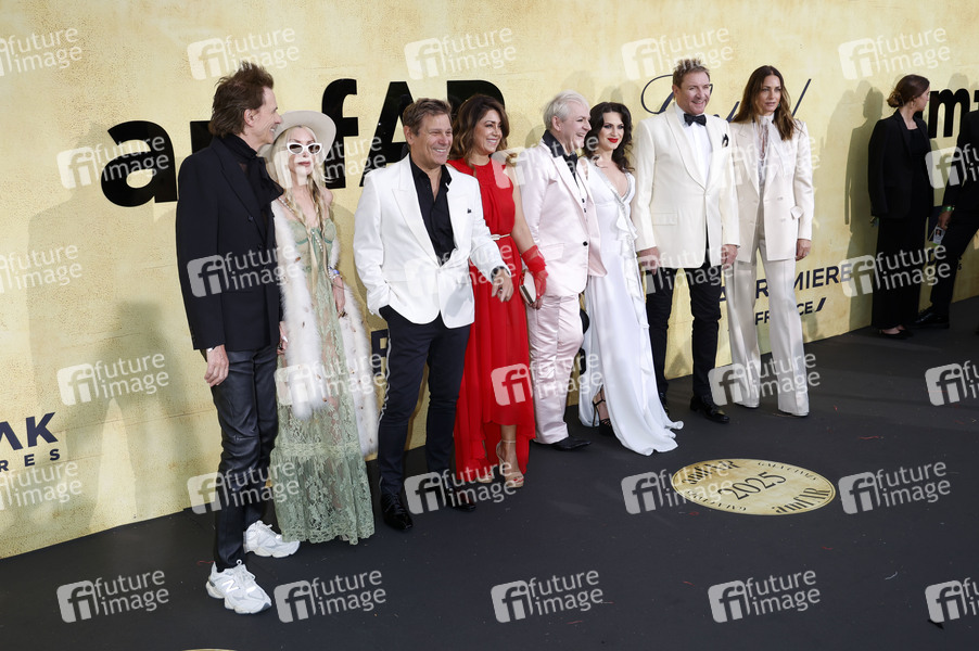 John Taylor, Gela Nash, Roger Taylor, Gisella Bernales, Nick Rhodes, Alexandra Stama, Simon Le Bon und Yasmin Le Bon bei der 31. amfAR Gala Cannes im Rahmen des Festival de Cannes 2025 / 78. Internationale Filmfestspiele von Cannes im Hôtel du Cap-Eden-Roc. Antibes, 22.05.2025