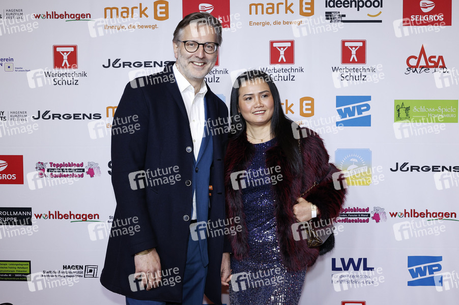 Detlev Kümmel und Nag Nöbling bei der Eröffnung vom 11. Eat My Shorts - Hagener Kurzfilmfestival 2024 in der Stadthalle. Hagen, 16.11.2024