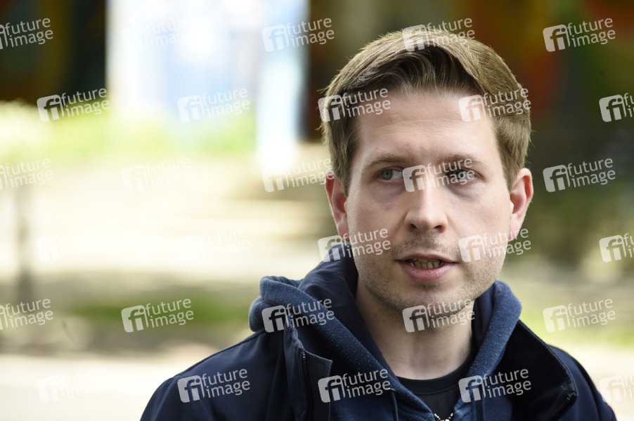 Kevin Kühnert bei der Hissung der Regenbogenflagge anlässlich des Internationalen Tages gegen Homo-, Bi-, Inter- und Transphobie am Willy-Brandt-Haus. Berlin, 17.05.2021