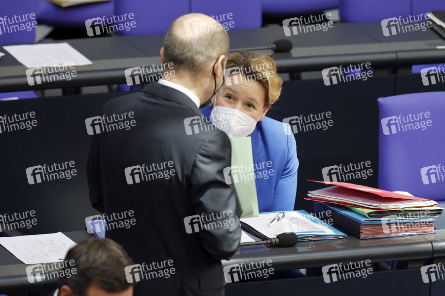 Olaf Scholz und Franziska Giffey in der 210. Sitzung des Deutschen Bundestages im Reichstagsgebäude. Berlin, 12.02.2021