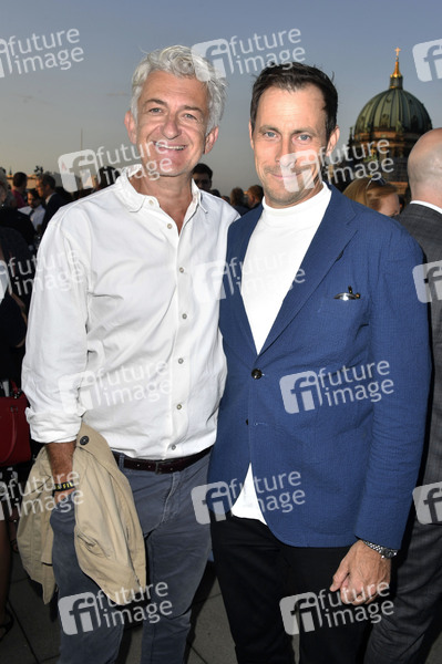 Dominic Raacke und Marc Hosemann beim Vorab-Empfang UFA Filmnächte 2019 auf der Dachterrasse der Bertelsmann-Repräsentanz. Berlin, 21.08.2019