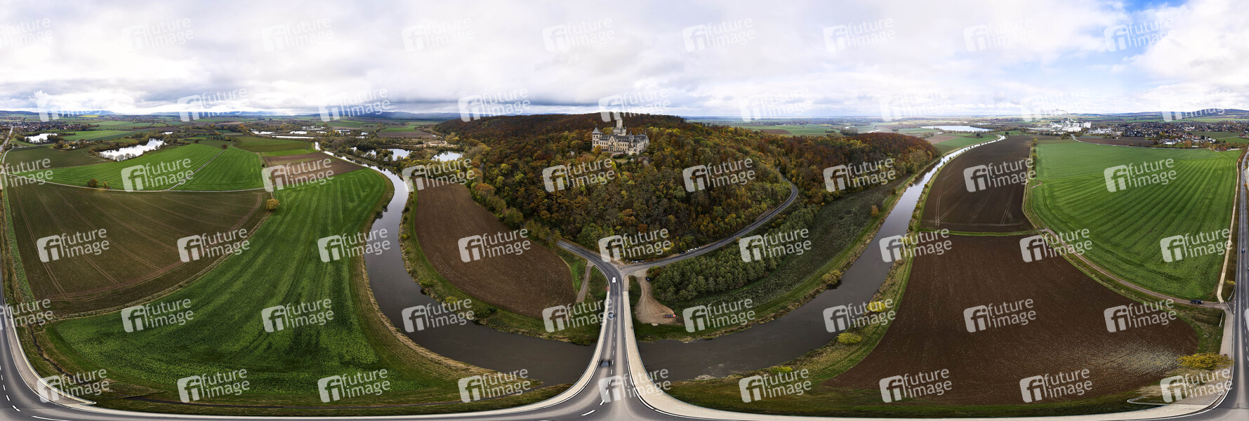 Luftaufnahme, offizieller Wohnsitz der Prinzen von Hannover, Welfen, Bauzeit 1857-1867, Ernst August von Hannover, Neugotik, Architekt: Conrad Wilhelm Hase, Pattensen, Herbstwald, Herbstlaub, dunkle Jahreszeit, dunkle Jahreshälfte, Laub, Blätter, Baum, Bäume, Herbstzeit, Goldener Herbst, Goldener Oktober, herbstlich, herbstliche Temperaturen, herbstliches Wetter, herbstliche Blätter, herbstliche Farben, herbstlich gefärbte Blätter, Herbstbild, Landschaft, Laubbäume, Herbstblätter, Stadtlaub, bunte Blätter, buntes Laub, Herbstblätter, Wetter, Laubfall, Natur, Panorama