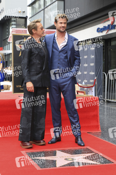 Robert Downey Jr. und Chris Hemsworth bei der Zeremonie zur Verleihung von einem Stern an Chris Hemsworth auf dem Hollywood Walk of Fame. Los Angeles, 23.05.2024