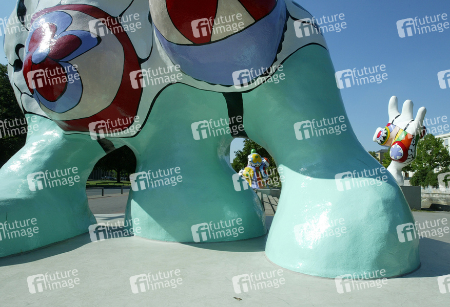 Kunstwerk von Niki de Saint Phalle von 1974, Frauenfiguren mit überdimensionierten Geschlechtsteilen