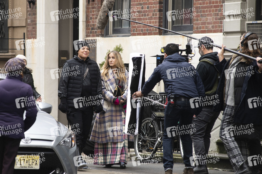 Sara Ramirez und Sarah Jessica Parker bei den Dreharbeiten zur HBO Max Streaming-Serie 'And Just Like That....', der Nachfolgeserie zu 'Sex and the City' in der Upper East Side. New York, 02.03.2023