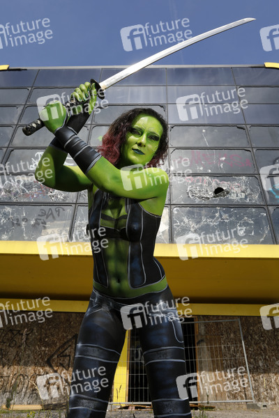 GEEK ART - Bodypainting meets SciFi, Fantasy and more: 'Guardians of the Galaxy' Photoshooting mit Janina Stein als Gamora auf dem Expo Gelände. Laatzen, 25.06.2019 - Ein Projekt des Fotografen Tschiponnique Skupin und des Bodypainters und Transformakers Enrico Lein
