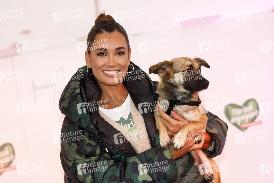 Jana Ina Zarrella mit Hund Cici beim Pressetermin zur Charity-Initinative 'Tierisch engagiert' unterstützt von Fressnapf im Tierheim Köln-Zollstock. Für die Aktion 'Freundschaft verbindet' hat sie ein Freundschaftsarmband designt, dessen Erlöse direkt an den Tierschutz und in tiertherapeutische Einrichtungen fließt. Köln, 29.09.2020