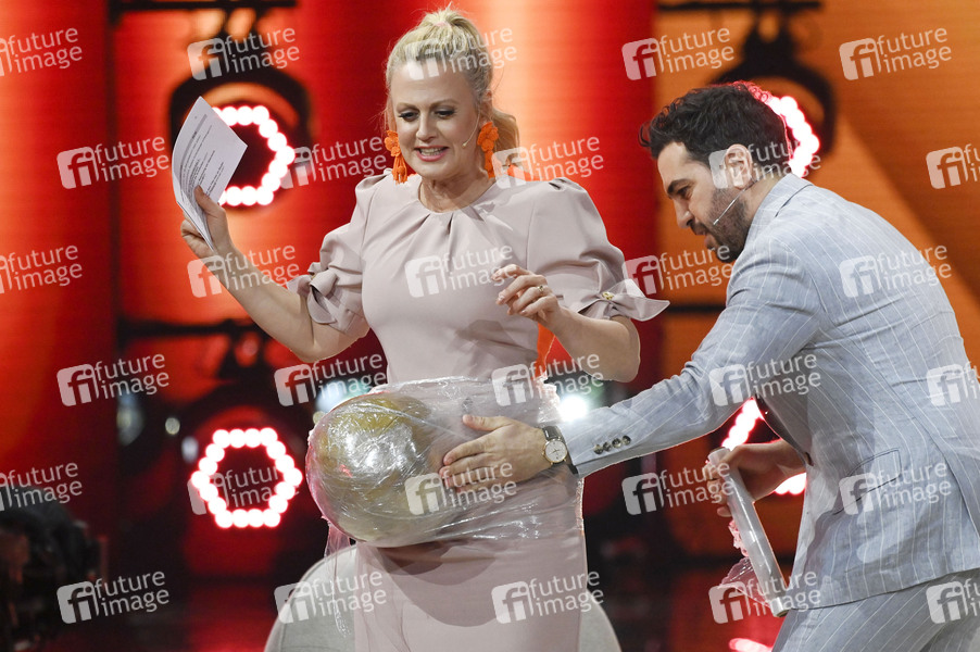 Barbara Schöneberger und Elyas M'Barek bei der Aufzeichnung der ARD-Unterhaltungsshow 'Verstehen Sie Spass?' im Studio H in Berlin-Adlershof. Berlin, 31.03.2022