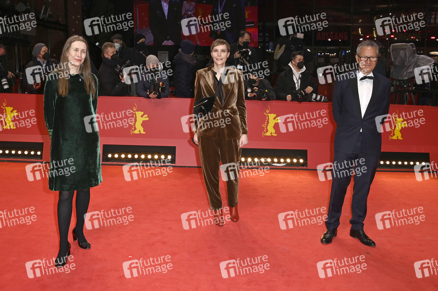 Mariette Rissenbeek, Claudia Steffen und Christoph Friedel bei der Premiere des Kinofilms 'Rabiye Kurnaz gegen George W. Bush' auf der Berlinale 2022 / 72. Internationale Filmfestspiele Berlin im Berlinale Palast. Berlin, 12.02.2022